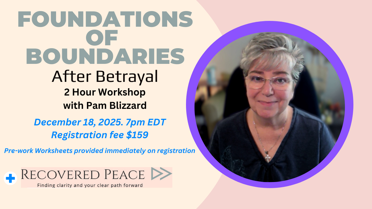 Enrollment is OPEN for Clarity and Peace with Boundaries a 4 week practical boundaries education led by Pam Blizzard, APSATS and Couple–Centered Recovery® betrayal trauma coach.